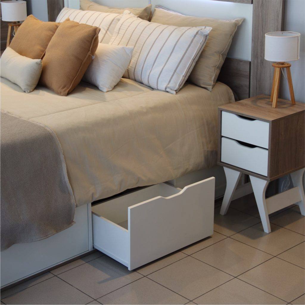 Los cajones de gran profundidad pueden ser utilizados para ropa de cama, calzado, accesorios o bien ropa que muchas veces no entra en los placares de los dormitorios convencionales. Tienen correderas metálicas de deslizamiento suave.