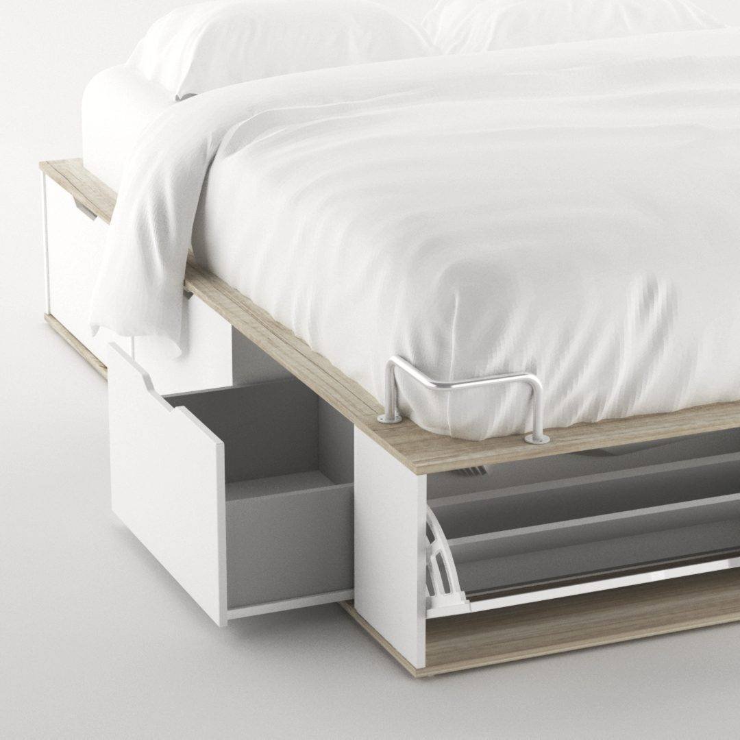 La cama box a diferencia de los sommiers tradicionales cuenta con la ventaja que no desperdicia el espacio que ocupa la superficie de la misma, es decir, optimiza al máximo el espacio destinado a la cama, que en un dormitorio suele ser muchas veces hasta el 70% del mismo.
